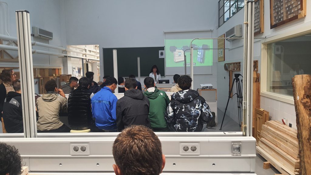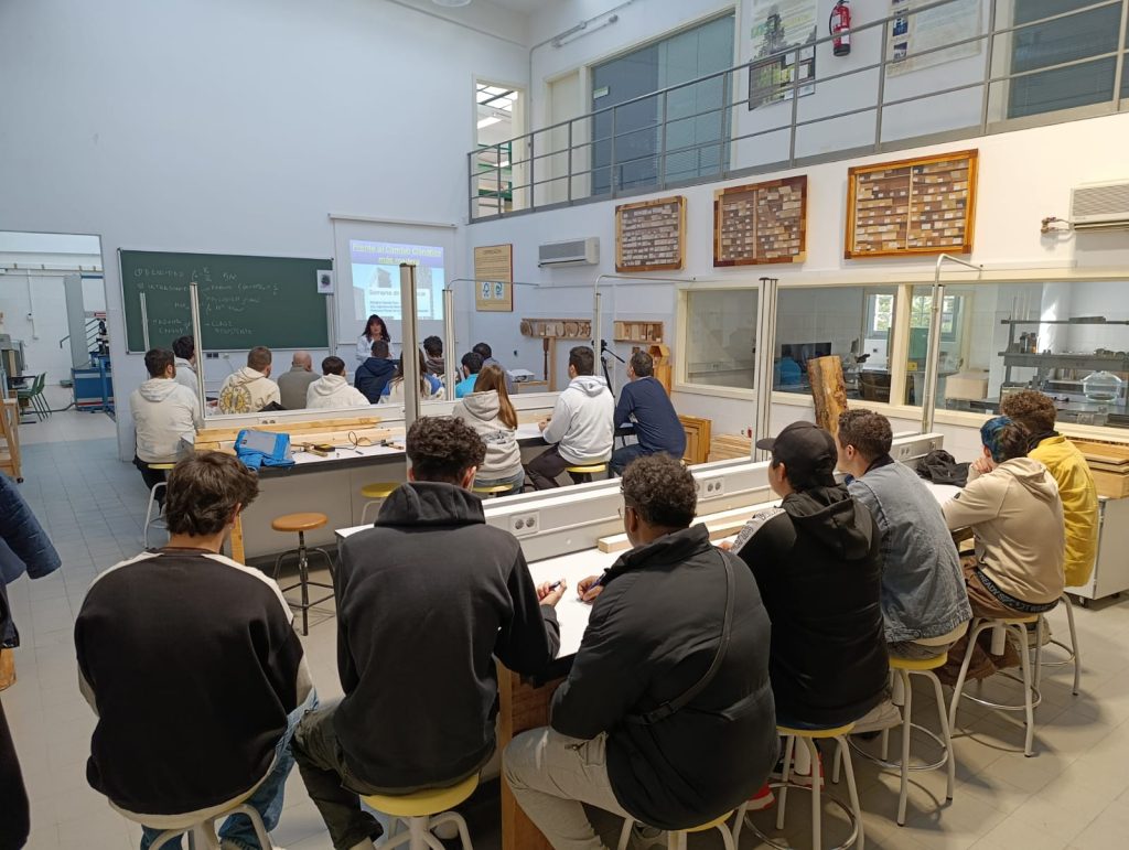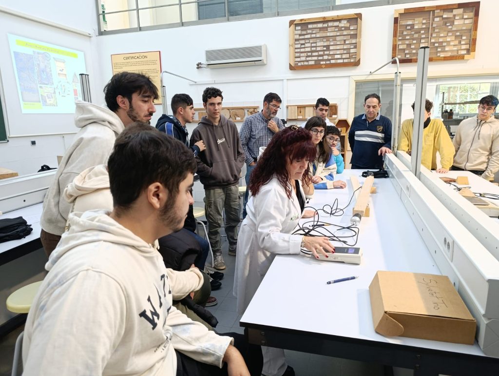 Hoy queremos dejar testimonio gráfico de la labor divulgativa de nuestros compañeros del laboratorio de maderas, capitaneados por la profesora (Dr. Ingeniera de Montes) Milagros Casado. El taller “Frente al Cambio Climático más MADERA”, recibió el pasado día 13 de noviembre en sus instalaciones, situadas en el edificio del aulario de la Yutera,  a 25 estudiantes del IES Camino de la Miranda (Palencia) acompañados por sus profesoras Rebeca Conde Ruiz y Eulalia Pérez Rodríguez, ambas Ingenieras de Montes egresadas de nuestra Escuela. El 14 de noviembre estuvieron 26 estudiantes del IES Ribera de Castilla (Valladolid) acompañados por los profesores Rubén Mediavilla y Eduardo Prieto. Os dejamos algunas imágenes de estos talleres: