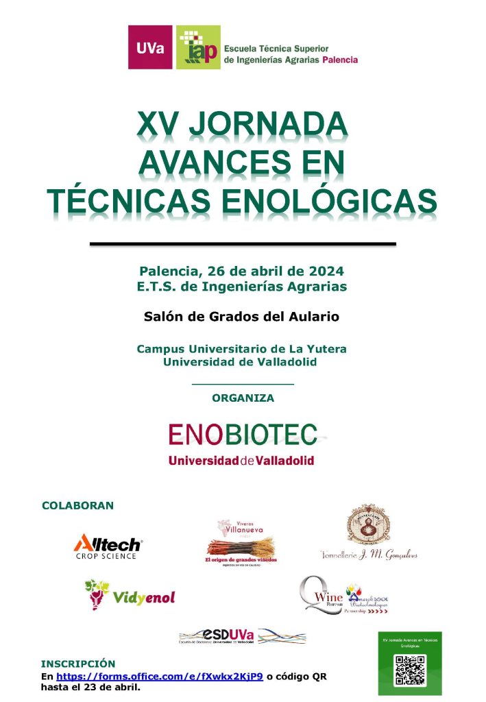 La Escuela Técnica Superior de Ingenierías Agrarias de Palencia (ETSIIAA) celebra el viernes 26 de abril de 2024 la XV Jornada Avances en Técnicas Enológicas. Esta Jornada, con carácter anual, está dirigida a técnicos, profesionales, estudiantes del sector enológico y agroalimentario y a toda persona interesada en la viticultura y la enología. El objetivo es […]