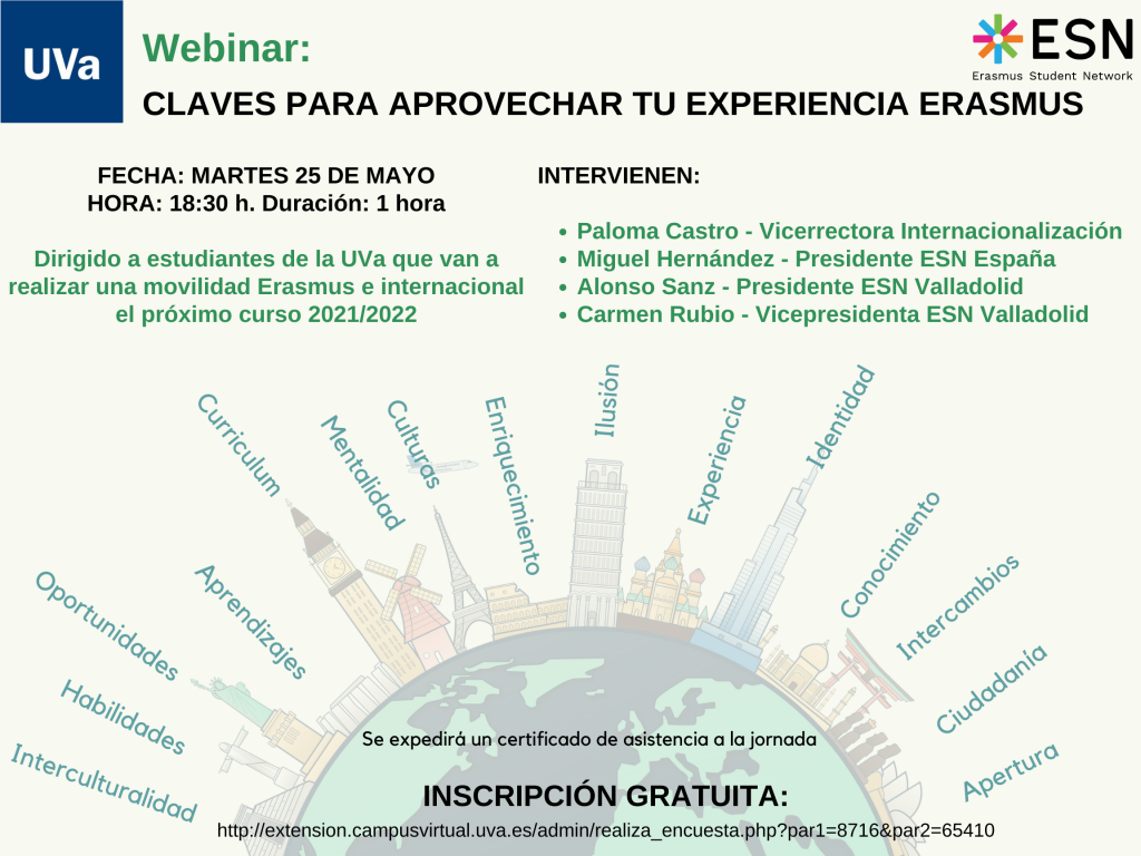 Webinar en la UVa: «Claves para aprovechar tu experiencia Erasmus»