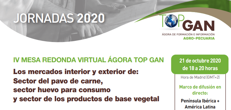 Mesa redonda virtual Los mercados interior y exterior de: sector del pavo de carne, sector huevo para consumo y sector de los productos de base vegetal La IV Mesa Redonda Virtual Top Gan presenta a tres ponentes de reconocido prestigio, moderados por el Profesor y Doctor Don Carlos Buxadé, que debatirán sobre la situación de […]