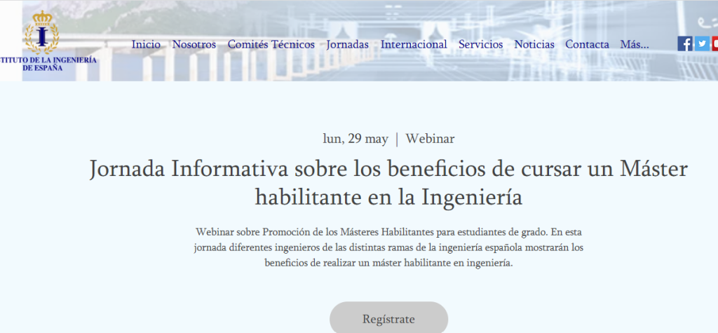 Invitación al webinar del Instituto de la Ingeniería de España para promover los Másteres Habilitantes de Ingeniería (29 Mayo 13.00h.)