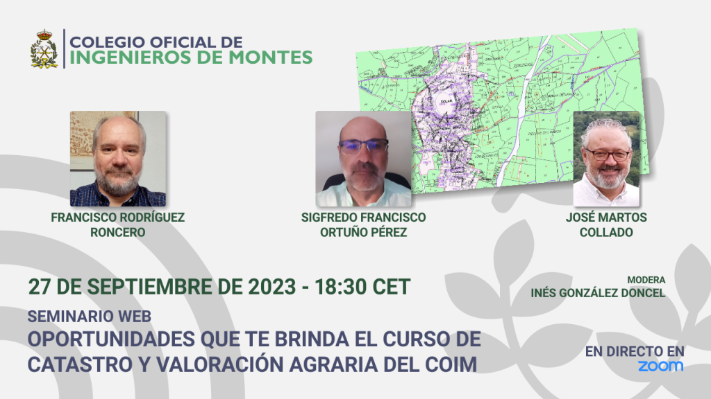 Seminario web: Oportunidades que te brinda el Curso de Catastro y Valoración Agraria del COIM Interesantísimo seminario web el 27 de septiembre de 18:30 a 19:00 horas, que mostrará en qué va a consistir el curso ofrecido por el COIM. La Valoración Agraria y la gestión del Catastro son dos disciplinas con gran relevancia económica, […]