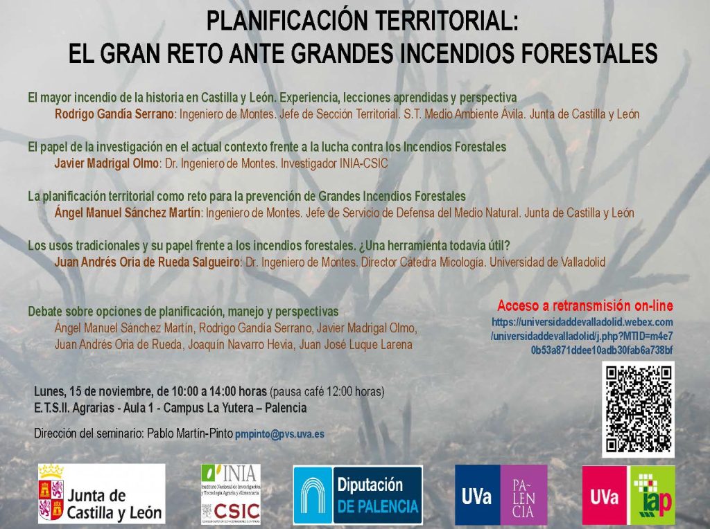 Jornada Planificación Territorial: El Gran Reto ante Grandes Incendios Forestales Lunes, 15 de noviembre, de 10:00 a 14:00 horas (pausa café 12:00 horas) E.T.S.II. Agrarias -Aula 1 -Campus La Yutera–Palencia El mayor incendio de la historia en Castilla y León. Experiencia, lecciones aprendidas y perspectiva Rodrigo Gandía Serrano: Ingeniero de Montes. Jefe de Sección Territorial. […]