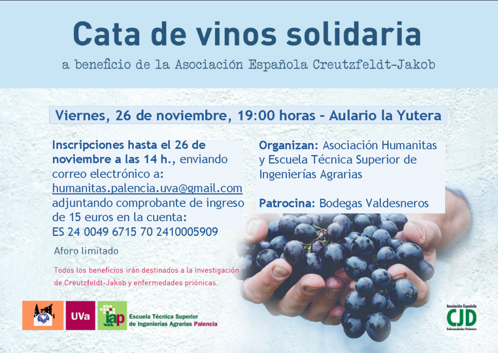 Se ha programado, en el Campus Universitario de Palencia”, a través de la Asociación Universitaria Humanitas, una “Cata de vinos Solidaria”. El destino de los fondos obtenidos será para la Asociación Española de Creutzfeldt Jakob . ( www.asociacioncjd.org ). Creutzfeldt Jakob es una enfermedad neurodegenerativa terminal causada por una proteína llamada prión que se encuentra en […]