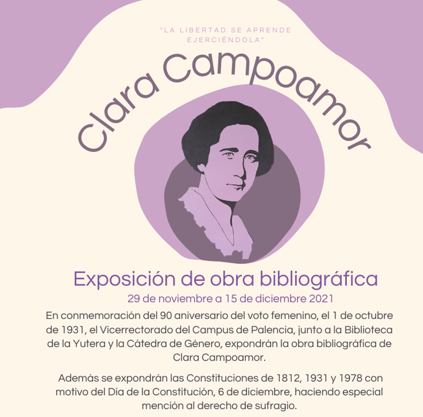 En conmemoración del 90 aniversario del voto femenino y en el marco de las actividades programadas por el 25N, el Vicerrectorado del Campus de Palencia, junto a la Biblioteca La Yutera y la Cátedra de Género, exponen la obra bibliográfica de Clara Campoamor del 29 de noviembre al 15 de diciembre. Además, se expondrán las Constituciones de […]
