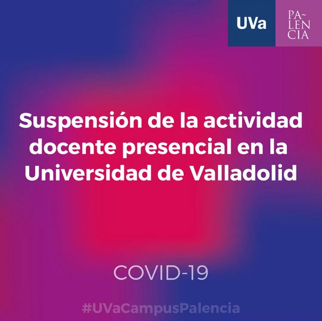 Estimados Estudiantes y compañer@s: Esta tarde, del 12 de marzo, el Rector de la UVa, a través del Gabinete de Comunicación ha indicado que: «se ha acordado la suspensión de la actividad docente presencial en la Universidad de Valladolid a partir de mañana viernes, 13 de marzo de 2020. La duración de esta medida estará […]